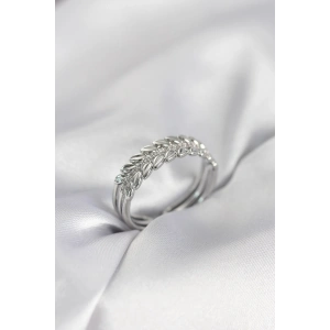 Gümüş Renk Başak Model Zirkon Taşlı Kadın Yüzük