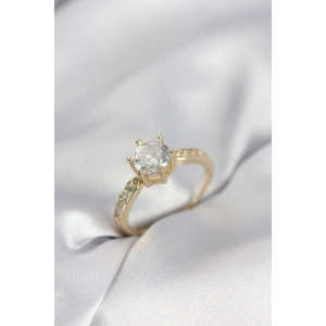 Gold Renk Zirkon Taşlı Tek Taş Model Kadın Yüzük