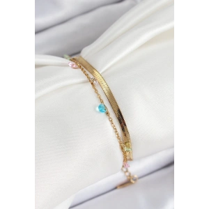 316L Çelik Gold Renk Karışık Renkli Kristal Taşlı 2'li Kadın Bileklik