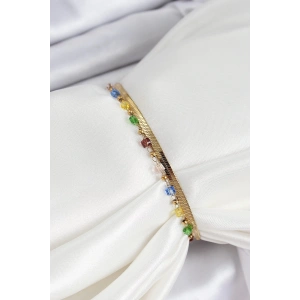 316L Çelik Gold Renk Karışık Renkli Kristal Taşlı Kadın Bileklik