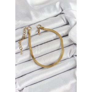 316L Çelik Gold Renk Yassı Zincir Model Kadın Bileklik