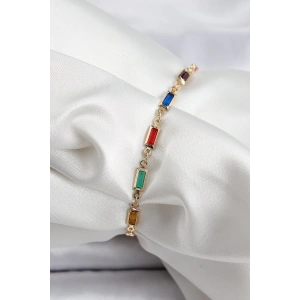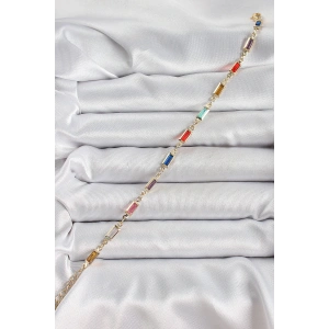 Pirinç Gold Renk Karışık Renkli Kare Zirkon Taşlı Kadın Bileklik