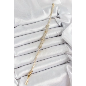 Pirinç Gold Renk Zirkon Taşlı Kemik Model Kadın Bileklik