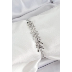 Pirinç Gümüş Renk Zirkon Taşlı Balık Sırtı Kadın Bileklik