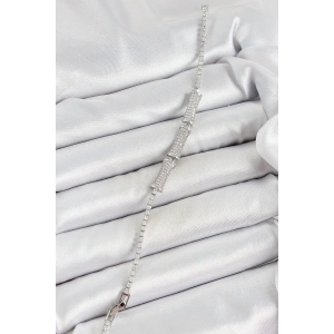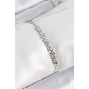 Pirinç Gümüş Renk Zirkon Taşlı Kemik Model Kadın Bileklik