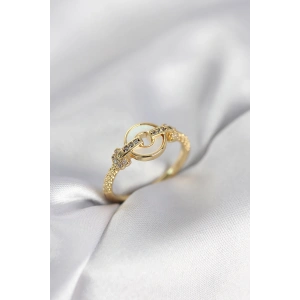 Gold Renk Daire Form Sedef ve Zirkon Taşlı Kadın Yüzük