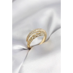 Gold Renk Zirkon Taşlı Sarmal Kadın Yüzük