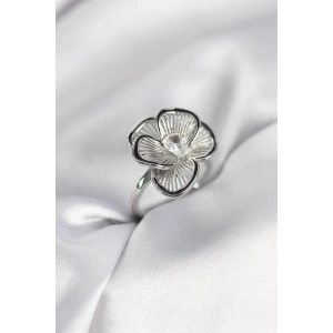 Gümüş Renk Çiçek Model Zirkon Taşlı Kadın Yüzük