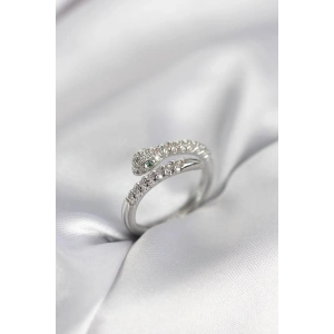 Yılan Model Gümüş Renk Zirkon Taşlı Kadın Yüzük