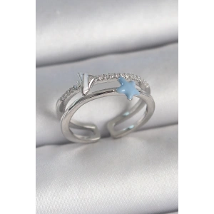 Pirinç Gümüş Renk 2'Li Zirkon Taşlı Mavi Yıldız Figür Ayarlanabilir Kadın Yüzük