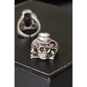 Eskitme Gümüş Renk Metal Kuru Kafa Tasarım Ayarlamalı Erkek Yüzük