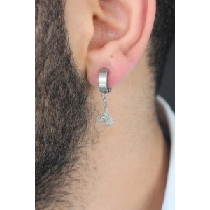 Silver Renk Kaplama Osmanlı Tuğra Figürlü Kıstırmalı Çelik Erkek Küpe