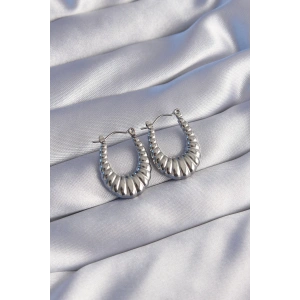 316L Çelik Gümüş Renk Kalp Halka Model Kadın Küpe Seti