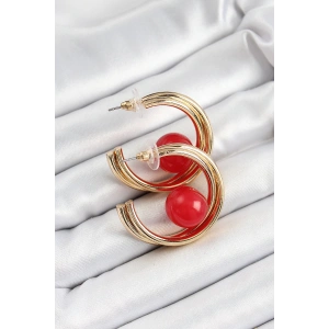 Pirinç Gold Renk Halka Model Kırmızı Boncuk Detay Kadın Küpe