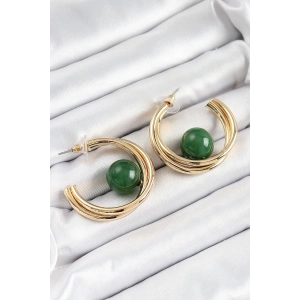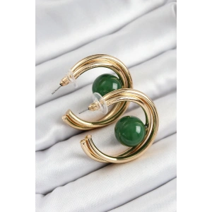 Pirinç Gold Renk Halka Model Yeşil Boncuk Detay Kadın Küpe