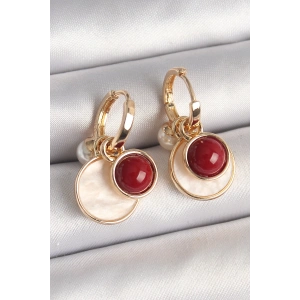 Pirinç Gold Renk Sallantı Beyaz Mineli Bordo Detay Kadın Küpe