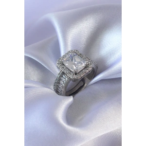 Gümüş Renk Zirkon Taşlı Kadın Yüzük