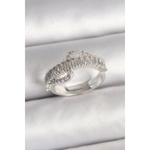 Pirinç Gümüş Renk Su Yolu Zirkon Taşlı Ayarlanabilir Model Kadın Yüzük