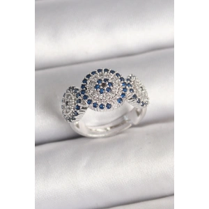 Pirinç Gümüş Renk Zirkon Taşlı Nazar Boncuk Model Ayarlanabilir Kadın Yüzük