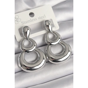 Pirinç Gümüş Renk Damla Detay Sallantı Halka Model Kadın Küpe