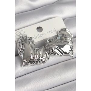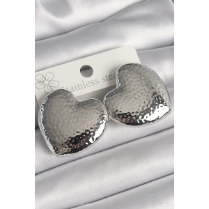 Pirinç Gümüş Renk İşleme Detaylı Kalp Model Kadın Küpe