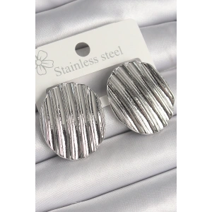 Pirinç Gümüş Renk Sallantı İşlemeli Daire Plaka Model Kadın Küpe