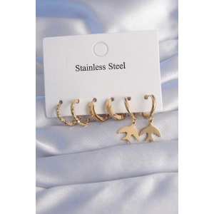 316L Çelik Gold Renk Çoklu Figür Model Kadın Küpe Seti
