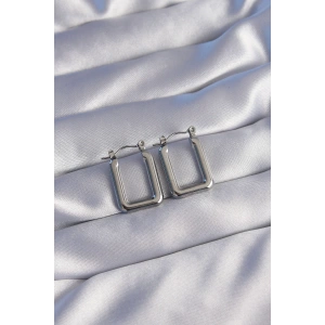316L Çelik Gümüş Renk Dikdörtgen Model Küpe