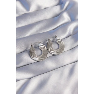 316L Çelik Gümüş Renk Oval Çizgili Plaka Küpe