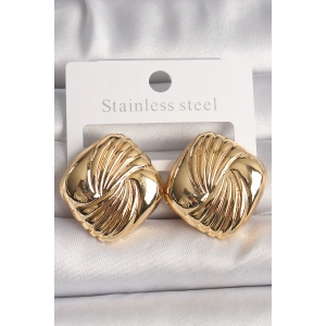 Pirinç Gold Renk İşlemeli Kare Model Kadın Küpe