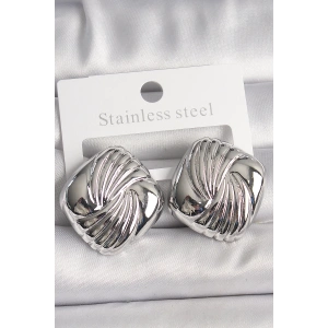 Pirinç Gümüş Renk İşlemeli Kare Model Kadın Küpe