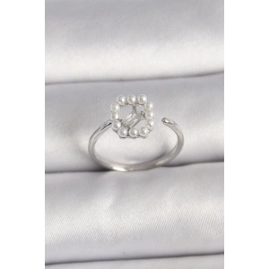 Pirinç Gümüş Renk Zirkon Taşlı Yonca Model İnci Detay Ayarlanabilir Yüzük