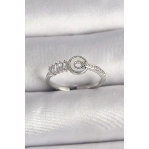 Pirinç Gümüş Renk Zirkon Taşlı Ayarlanabilir Kadın Yüzük