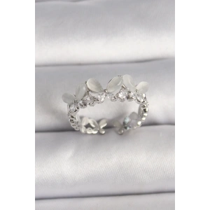 Pirinç Gümüş Renk Zirkon Taşlı Beyaz Mineli Kelebek Model Ayarlanabilir Yüzük