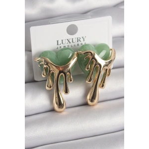 Pirinç Gold Renk Yeşil Sedefli Akan Kalp Model Kadın Küpe