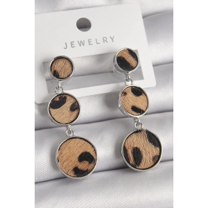 Pirinç Gümüş Renk 3'Lü Daire Plaka Leopar Desenli Kadın Küpe