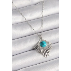 316L Çelik Gümüş Renk Zincir Zirkon Taşlı İşleme Mavi Simli Kadın Kolye