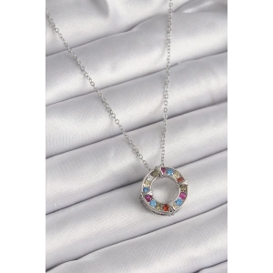 316L Çelik Gümüş Renk Zincir Renkli Zirkon Taşlı Xoxo Model Kadın Kolye