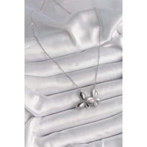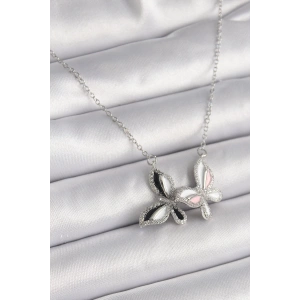 316L Çelik Gümüş Renk Zincir Zirkon Taşlı Renkli Kelebek Model Kadın Kolye