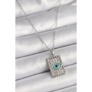 316L Çelik Gümüş Renk Zirkon Taşlı Göz İşleme Detaylı Plaka Model Kadın Kolye
