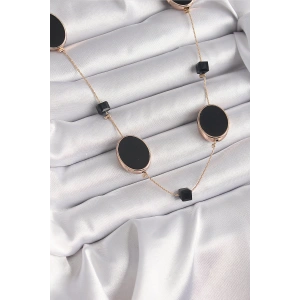 Pirinç Gold Renk Siyah Renk Oval Siyah Küp Detay Kadın Kolye