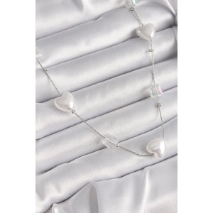 Pirinç Gümüş Renk Beyaz İnci Kalp Model Kadın Kolye