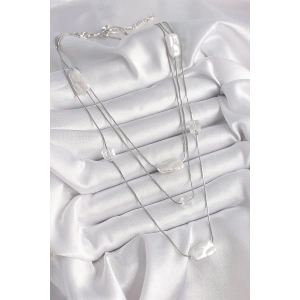 Pirinç Gümüş Renk Ezme İnci Model Çoklu Kadın Kolye