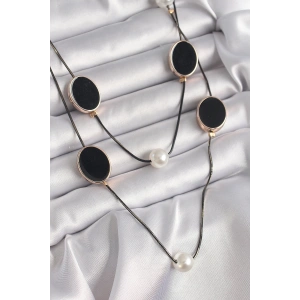 Pirinç Siyah Renk Zincir İnci Detaylı Çoklu Kadın Kolye