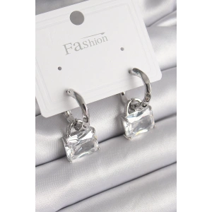 Pirinç Gümüş Renk Zirkon Taşlı Fiyonk Model Kadın Küpe