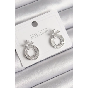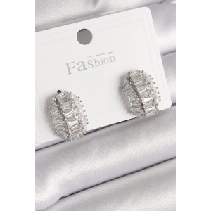 Pirinç Gümüş Renk Zirkon Taşlı Motif Model Kadın Küpe
