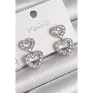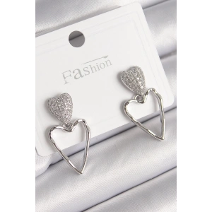 Pirinç Gümüş Renk Zirkon Taşlı Sallantı Kalp Model Kadın Küpe
