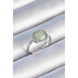Pirinç Gümüş Renk Yeşil Kare Mineli Kadın Yüzük