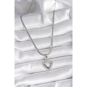 316L Çelik Gümüş Renk Kare Madalyon Kalp Zirkon Taş İşleme Kadın Kolye