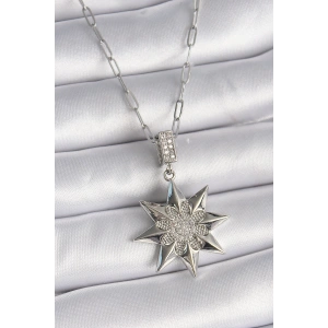 316L Çelik Gümüş Renk Zirkon Taşlı Kutup Yıldızı Model Kadın Kolye